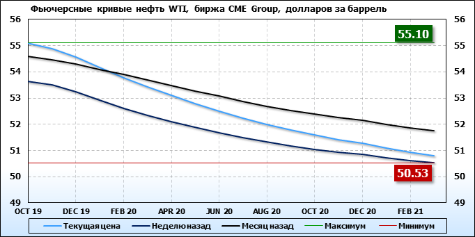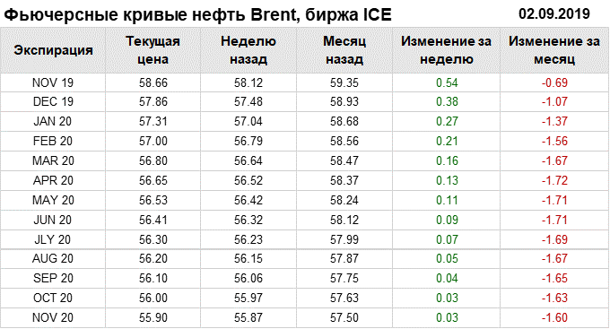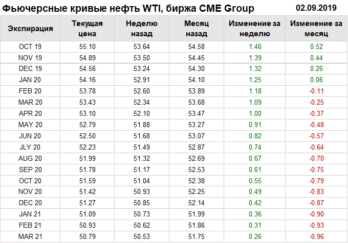 Фьючерсные кривые. Нефть. Биржи CME Group и ICE. Данные на 02.09.19