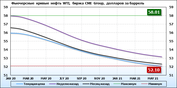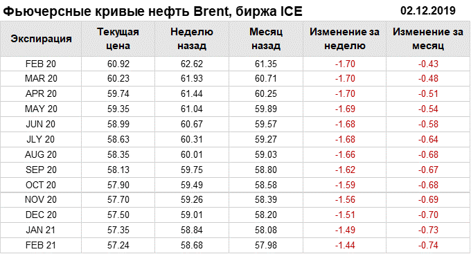 Фьючерсные кривые. Нефть. Биржи CME Group и ICE. Данные на 02.12.19