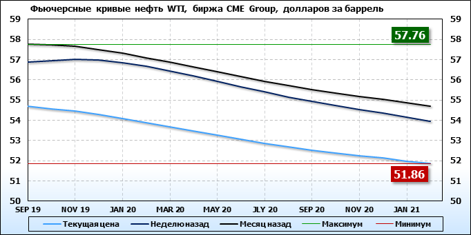 Фьючерсные кривые. Нефть. Биржи CME Group и ICE. Данные на 05.08.19