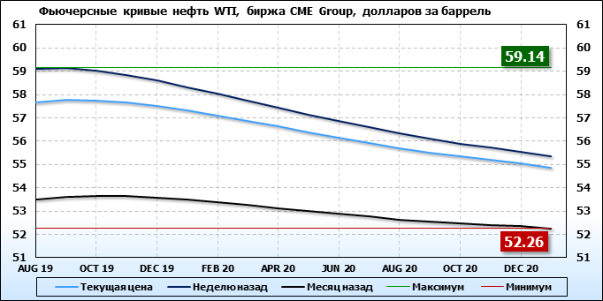 Фьючерсные кривые. Нефть. Биржи CME Group и ICE. Данные на 08.07.19