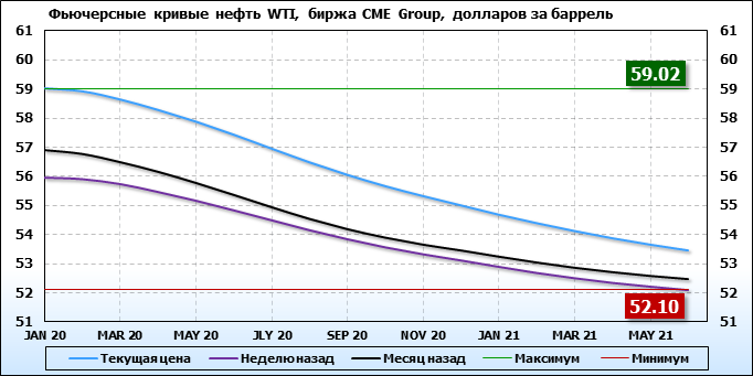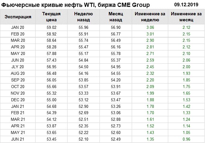 Фьючерсные кривые. Нефть. Биржи CME Group и ICE. Данные на 09.12.19