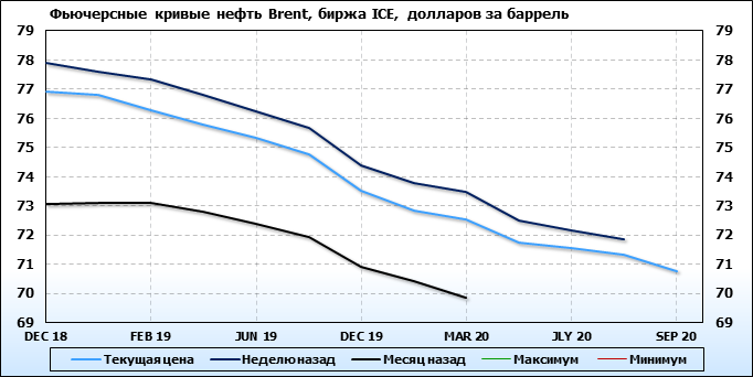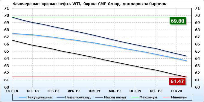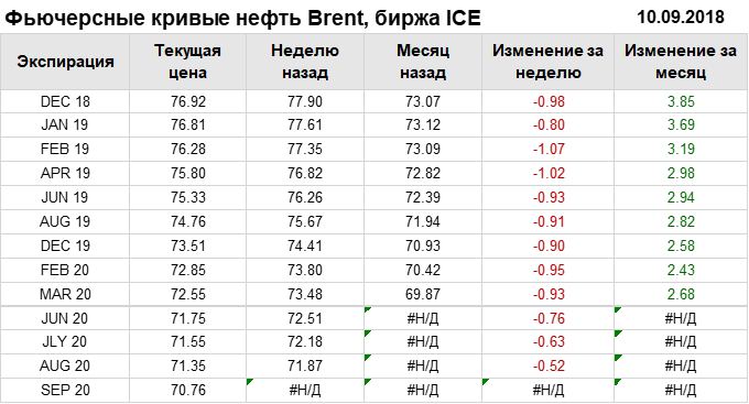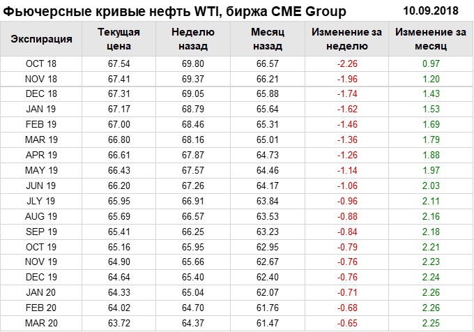 Фьючерсные кривые. Нефть. Биржи CME Group и ICE. Данные на 10.09.18