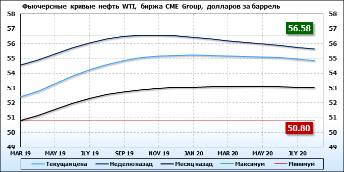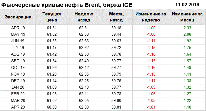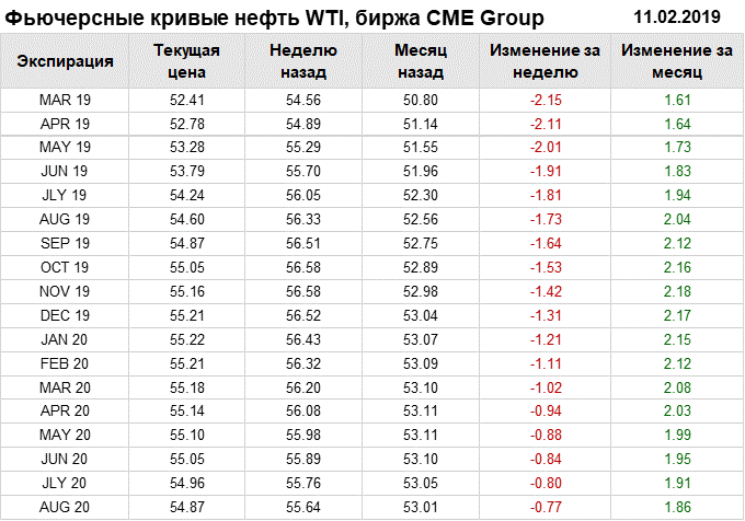 Фьючерсные кривые. Нефть. Биржи CME Group и ICE. Данные на 11.02.19