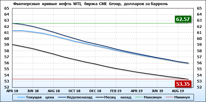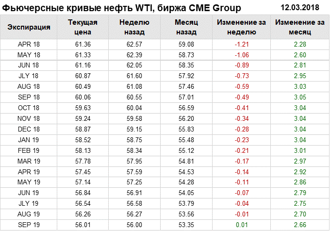 Фьючерсные кривые. Нефть. Биржи CME Group и ICE. Данные на 12.03.2018