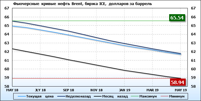 Как мы видим, на графике, фьючерсная кривая имеет периоды, когда более дальний фьючерс дешевле ближнего. Состояние бэквардации наблюдаем на следующих контрактах: JUN 18; JLY 18; AUG 18; SEP 18; OCT 18; NOV 18; DEC 18; JAN 19; FEB 19; MAR 19; APR 19; MAY 19.