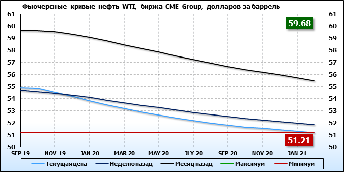 Фьючерсные кривые. Нефть. Биржи CME Group и ICE. Данные на 12.08.19