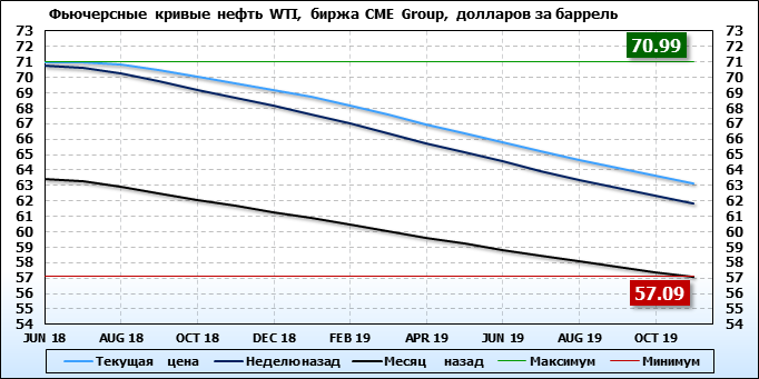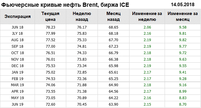 Фьючерсные кривые. Нефть. Биржи CME Group и ICE. Данные на 14.05.2018
