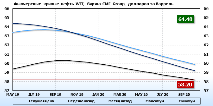 Фьючерсные кривые. Нефть. Биржи CME Group и ICE. Данные на 15.04.19