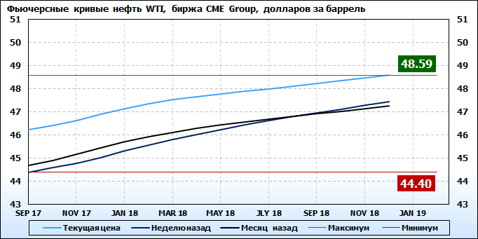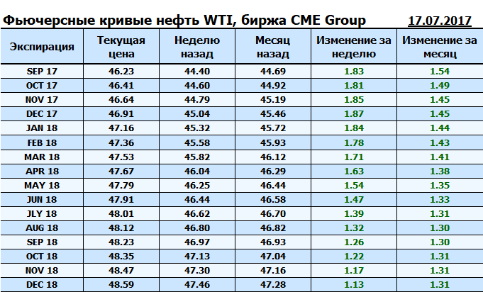 Фьючерсные кривые. Нефть. Биржи CME Group и ICE. Данные на 17.07.2017
