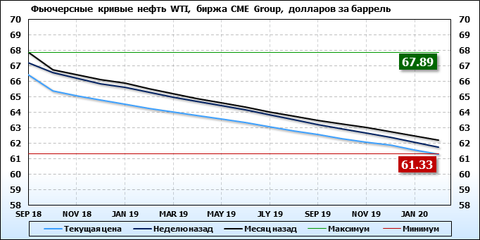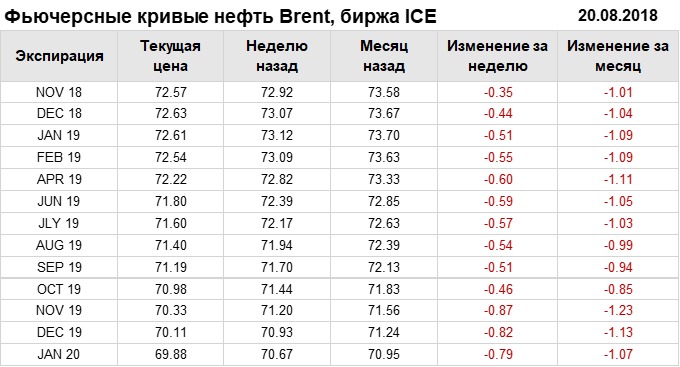 Фьючерсные кривые. Нефть. Биржи CME Group и ICE. Данные на 20.08.2018