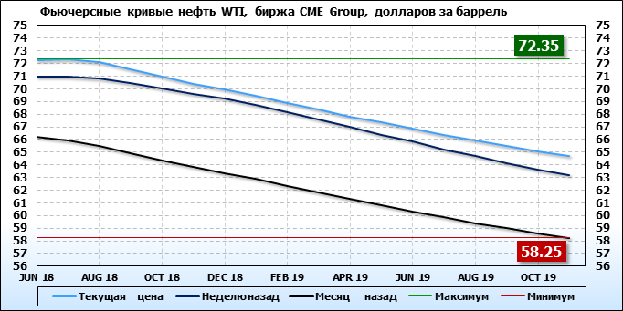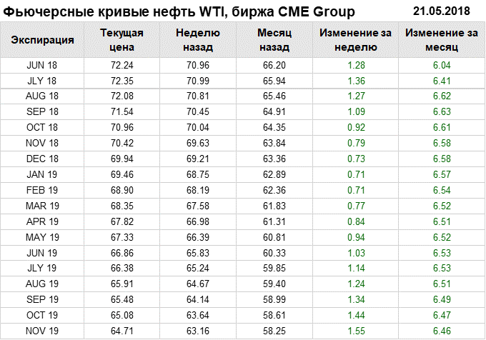 Фьючерсные кривые. Нефть. Биржи CME Group и ICE. Данные на 21.05.2018
