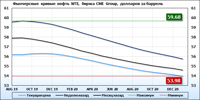 Фьючерсные кривые. Нефть. Биржи CME Group и ICE. Данные на 22.07.19