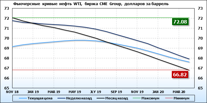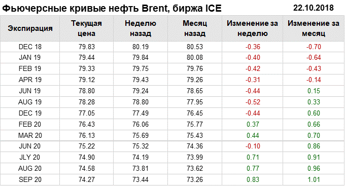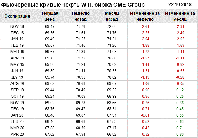 Фьючерсные кривые. Нефть. Биржи CME Group и ICE. Данные на 22.10.18