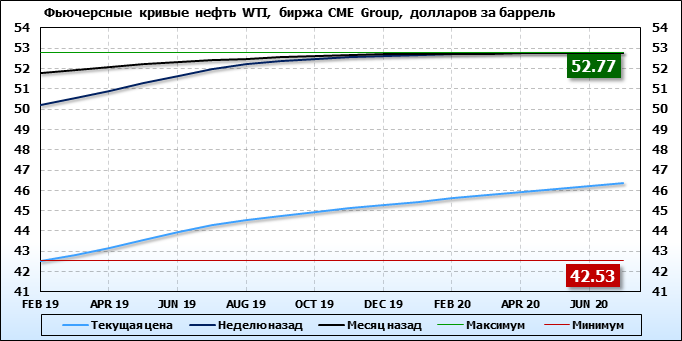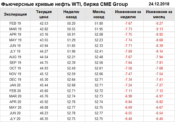 Фьючерсные кривые. Нефть. Биржи CME Group и ICE. Данные на 24.12.18