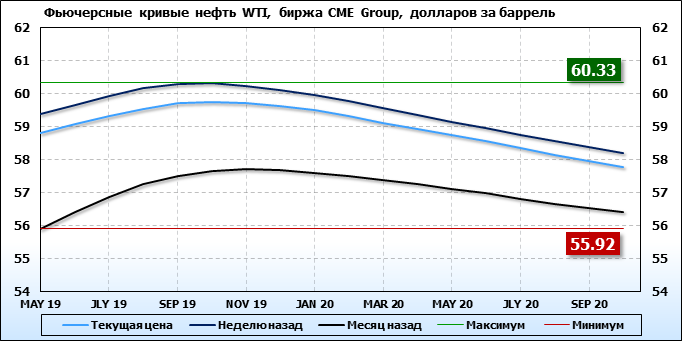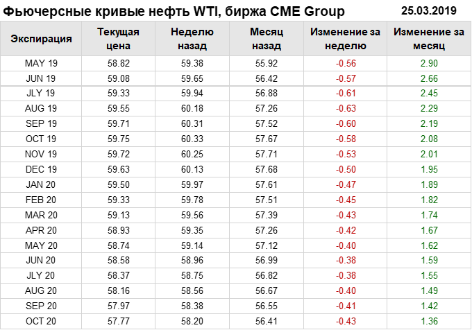 Фьючерсные кривые. Нефть. Биржи CME Group и ICE. Данные на 25.03.19