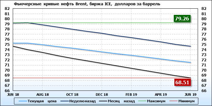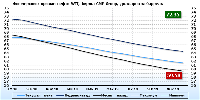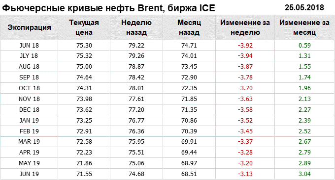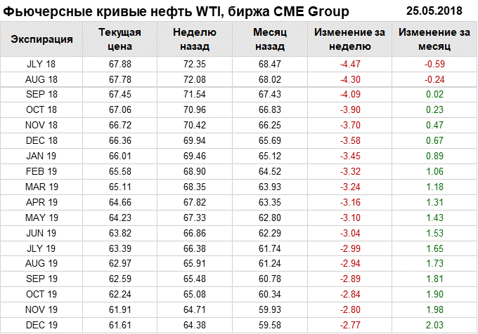 Фьючерсные кривые. Нефть. Биржи CME Group и ICE. Данные на 25.05.2018