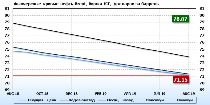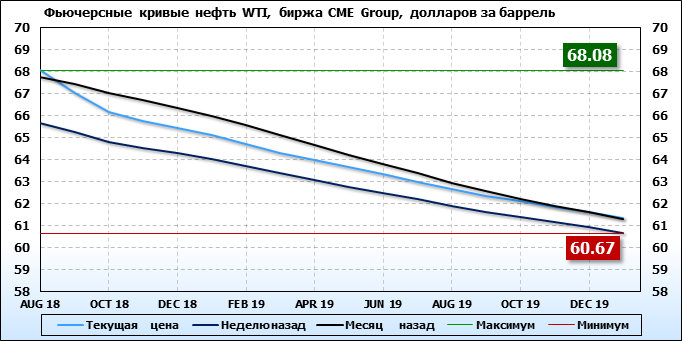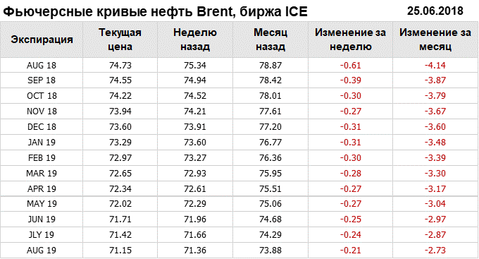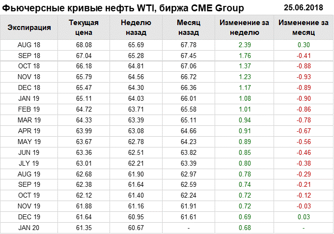 Фьючерсные кривые. Нефть. Биржи CME Group и ICE. Данные на 25.06.2018