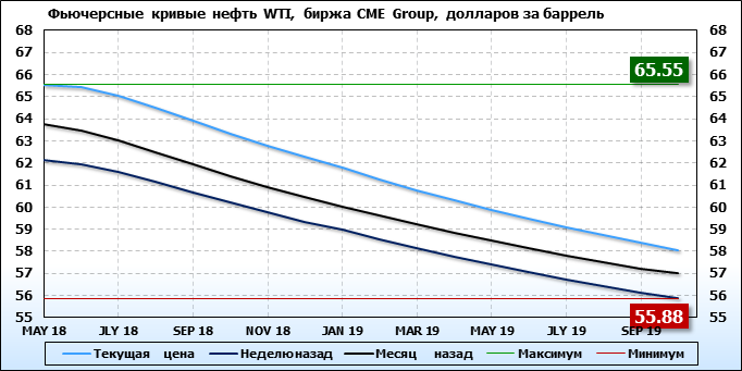 Фьючерсные кривые. Нефть. Биржи CME Group и ICE. Данные на 26.03.2018