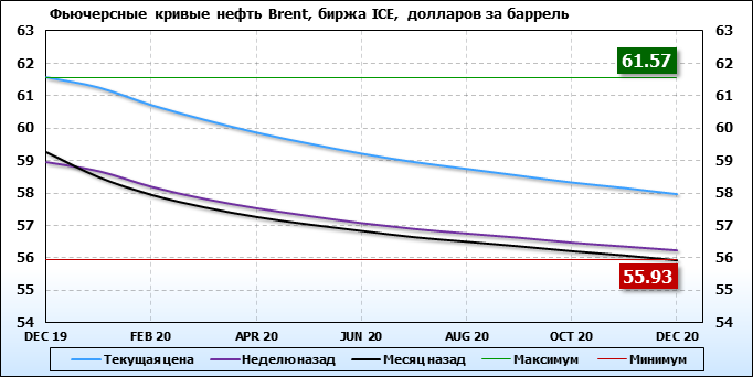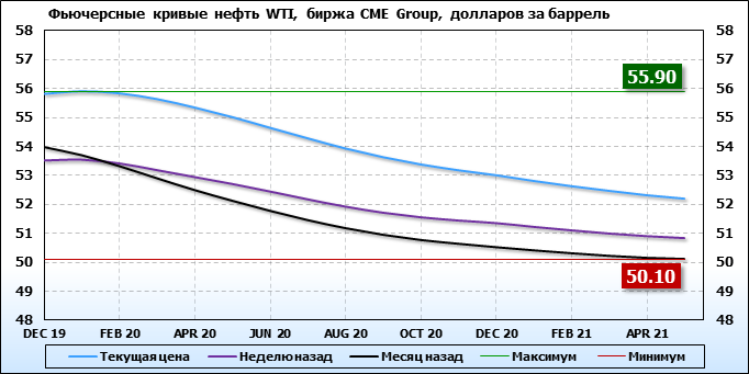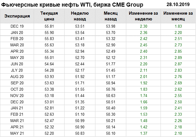 Фьючерсные кривые. Нефть. Биржи CME Group и ICE. Данные на 28.10.19