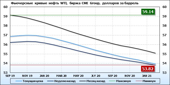 Фьючерсные кривые. Нефть. Биржи CME Group и ICE. Данные на 29.07.19