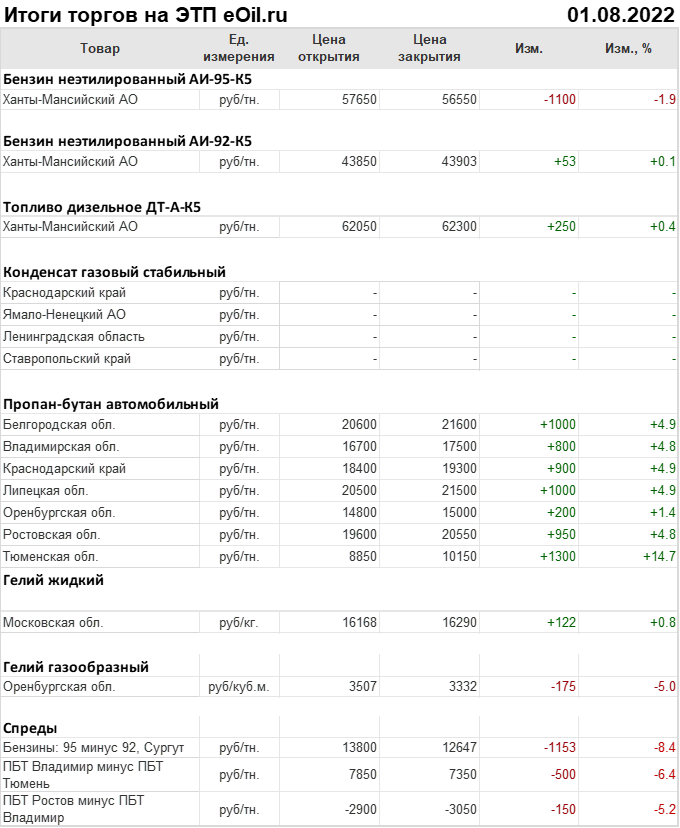 Итоги торгов на ЭТП eOil.ru 1 августа 2022