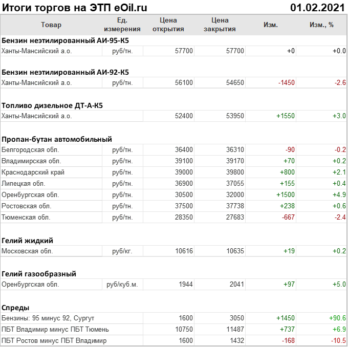 Итоги торгов на ЭТП eOil.ru 1 февраля 2021