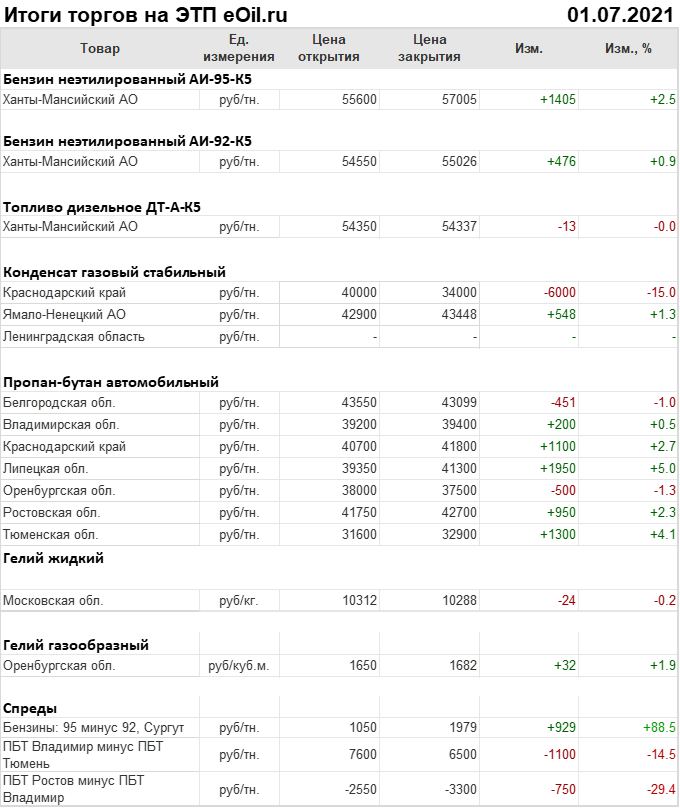 Итоги торгов на ЭТП eOil.ru 1 июля 2021