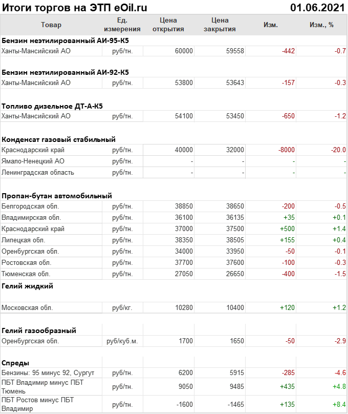 Итоги торгов на ЭТП eOil.ru 1 июня 2021