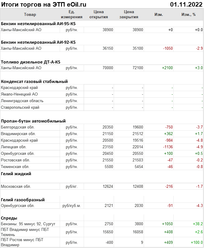 Итоги торгов на ЭТП eOil.ru 1 ноября 2022
