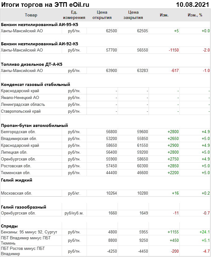 Итоги торгов на ЭТП eOil.ru 10 августа 2021
