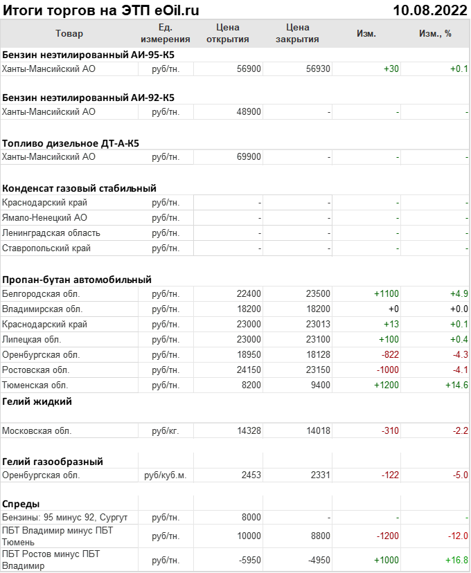 Итоги торгов на ЭТП eOil.ru 10 августа 2022