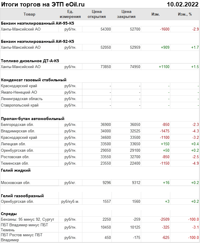 Итоги торгов на ЭТП eOil.ru 10 февраля 2022