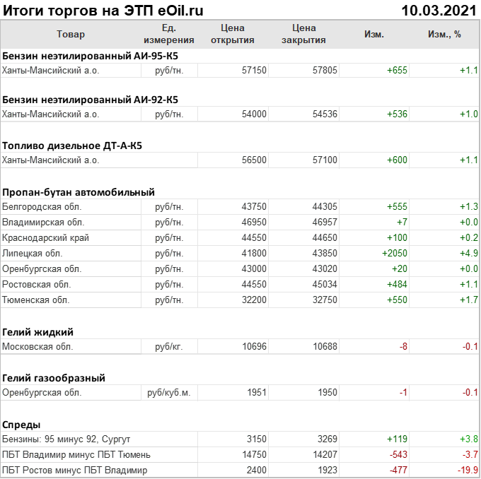 Итоги торгов на ЭТП eOil.ru 10 марта 2021