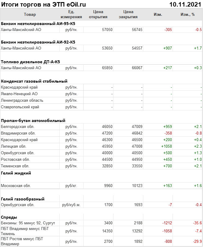 Итоги торгов на ЭТП eOil.ru 10 ноября 2021