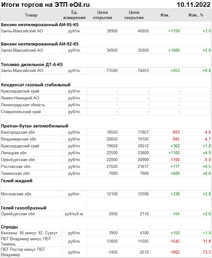 Итоги торгов на ЭТП eOil.ru 10 ноября 2022