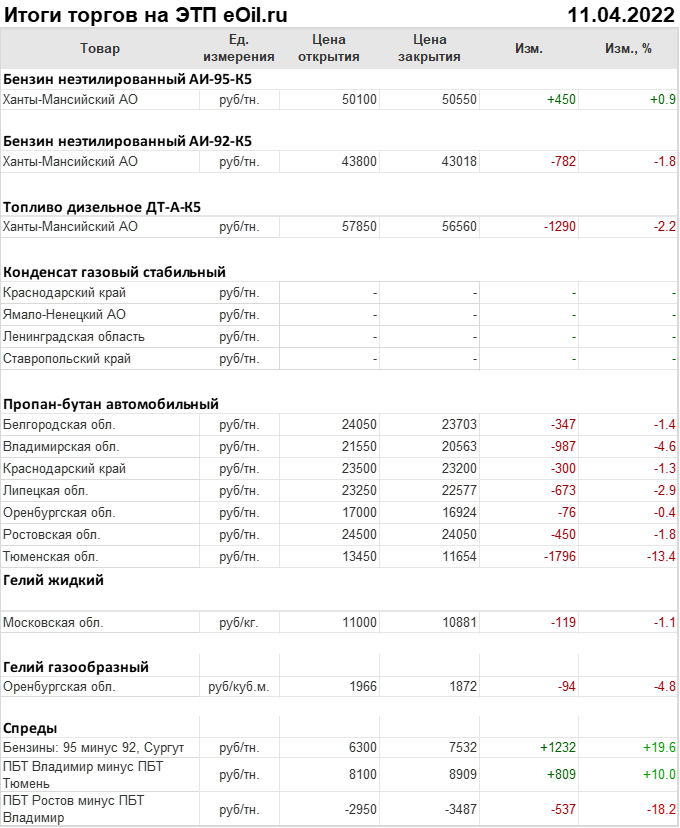 Итоги торгов на ЭТП eOil.ru 11 апреля 2022
