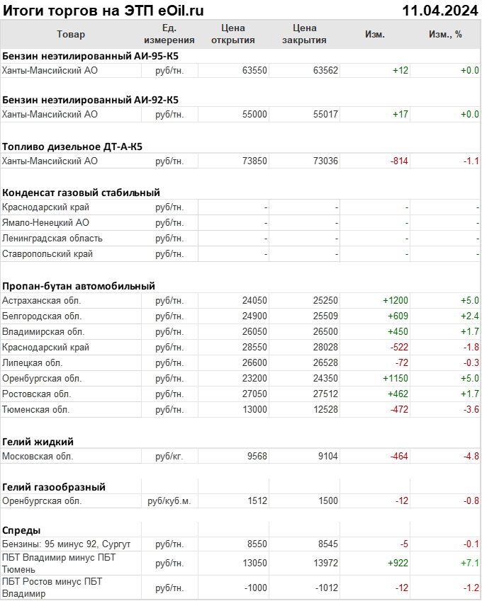 Итоги торгов на ЭТП eOil.ru 11 апреля 2024