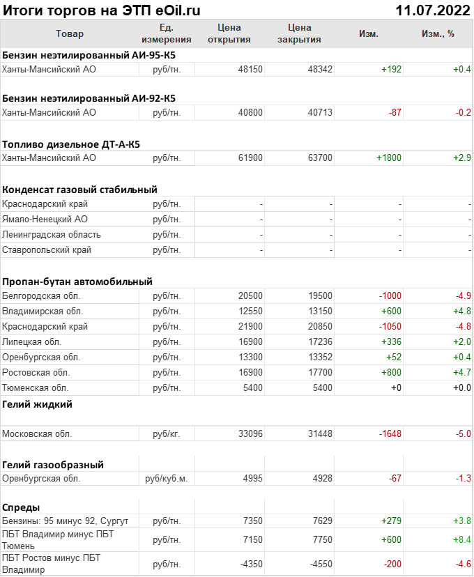 Итоги торгов на ЭТП eOil.ru 11 июля 2022