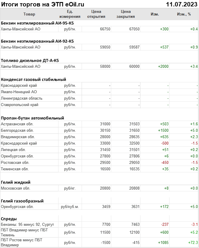 Итоги торгов на ЭТП eOil.ru 11 июля 2023