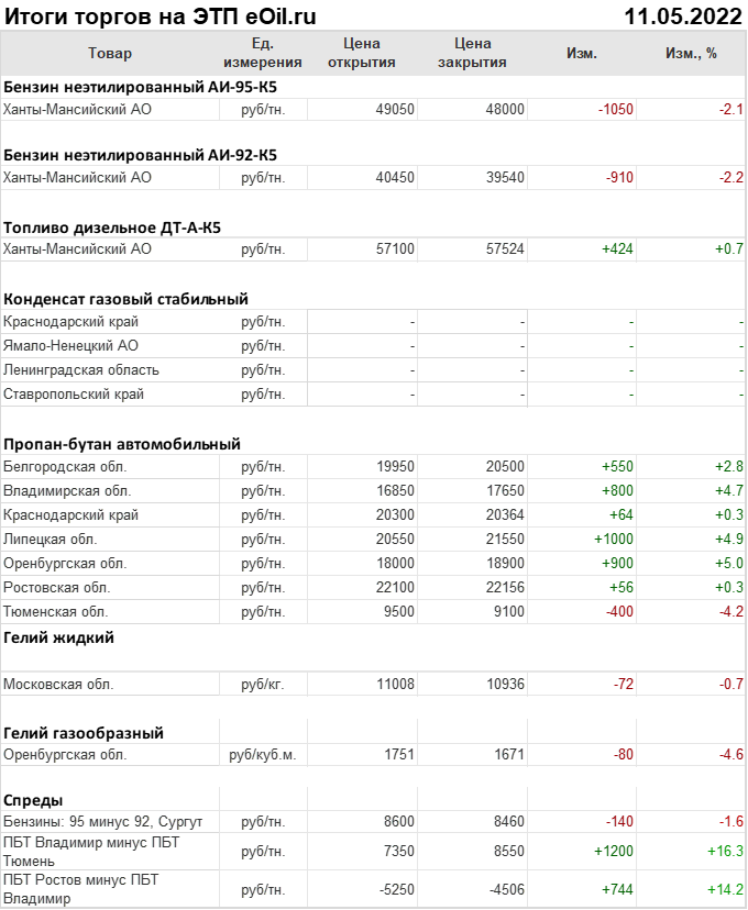 Итоги торгов на ЭТП eOil.ru 11 мая 2022