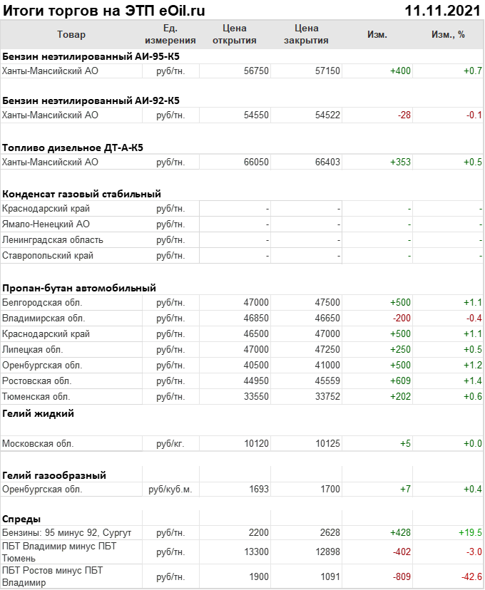 Итоги торгов на ЭТП eOil.ru 11 ноября 2021
