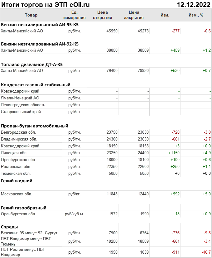 Итоги торгов на ЭТП eOil.ru 12 декабря 2022