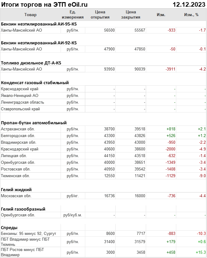 Итоги торгов на ЭТП eOil.ru 12 декабря 2023