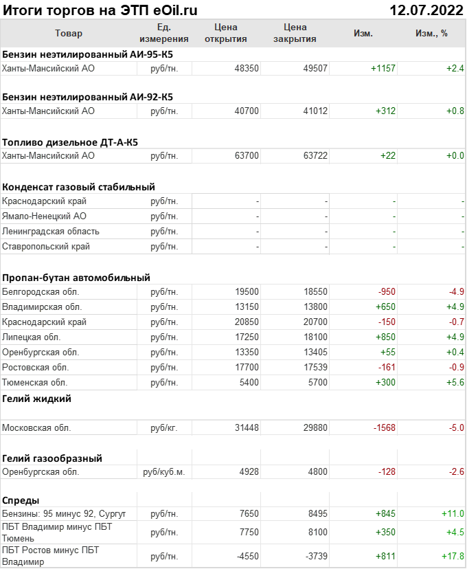 Итоги торгов на ЭТП eOil.ru 12 июля 2022
