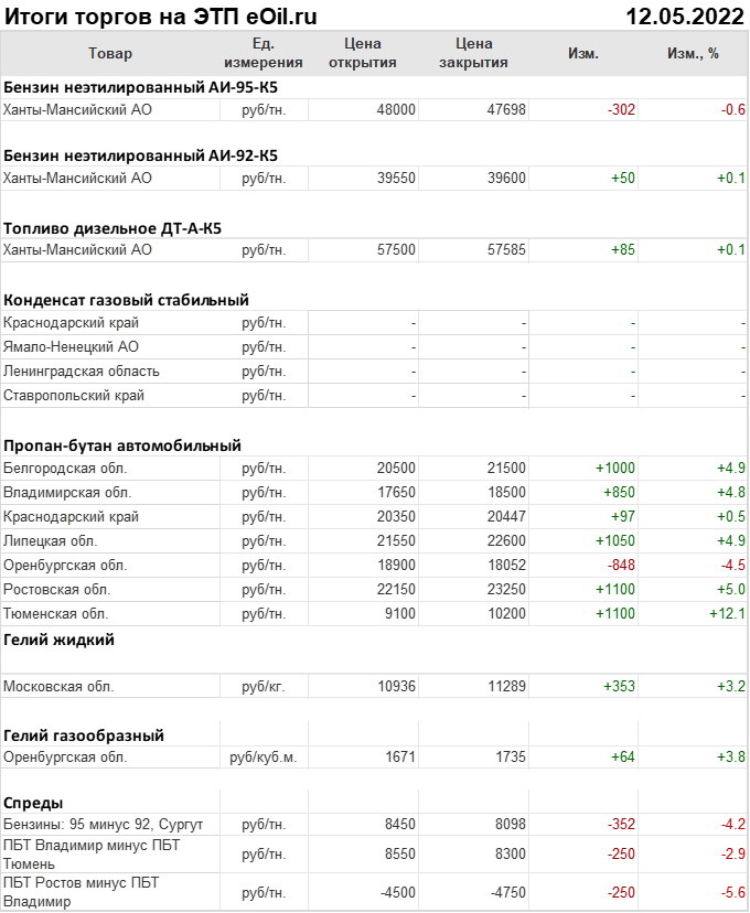 Итоги торгов на ЭТП eOil.ru 12 мая 2022
