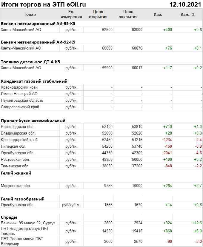 Итоги торгов на ЭТП eOil.ru 12 октября 2021