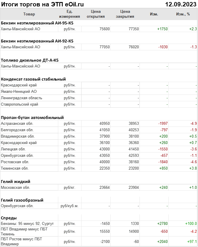 Итоги торгов на ЭТП eOil.ru 12 сентября 2023