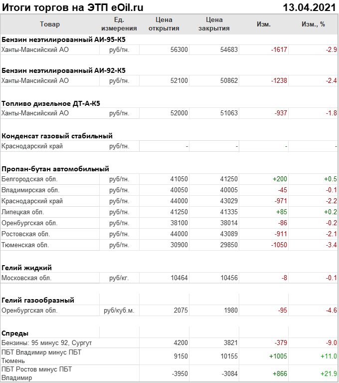 Итоги торгов на ЭТП eOil.ru 13 апреля 2021