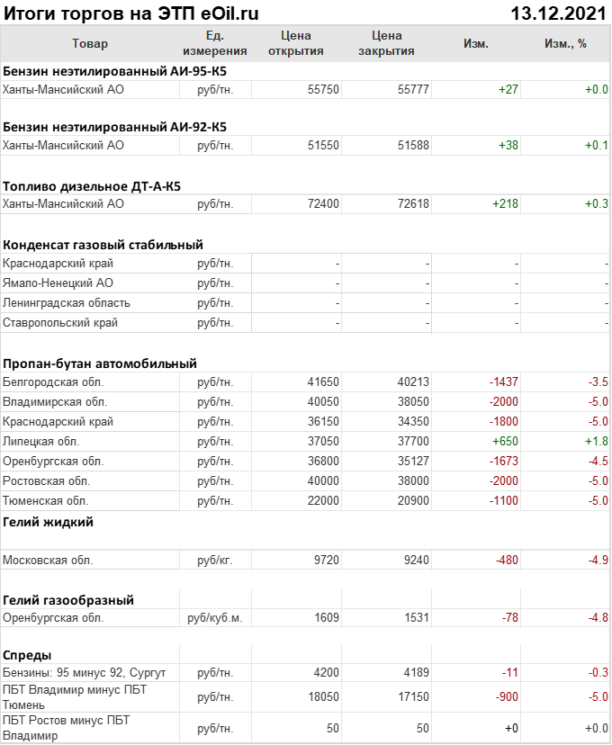 Итоги торгов на ЭТП eOil.ru 13 декабря 2021