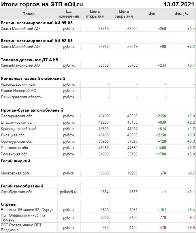 Итоги торгов на ЭТП eOil.ru 13 июля 2021
